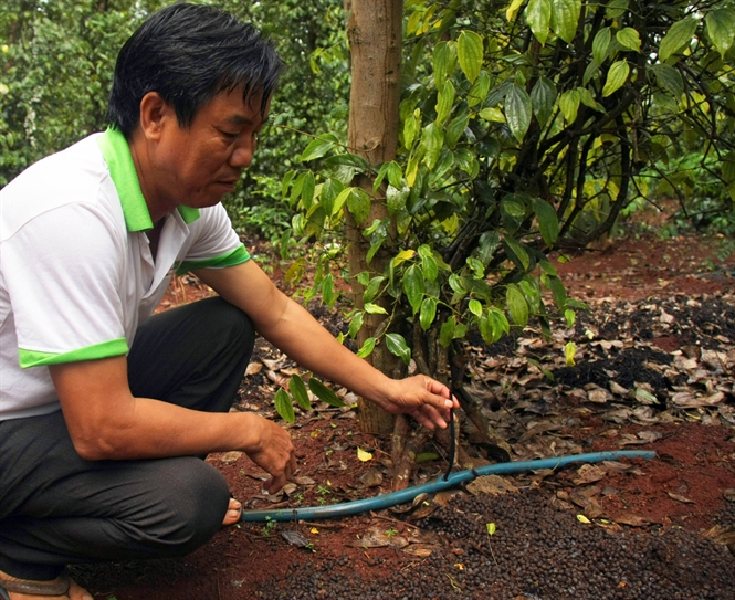 “Các vườn sử dụng phân hóa học, hồ tiêu cho năng suất cao, nhưng cây sẽ nhanh kiệt quệ. Vườn của tôi vẫn duy trì năng suất đều hàng năm, cây sống khỏe, tuổi thọ kéo dài. Cả vườn đã được 20 năm tuổi”, ông cho hay.